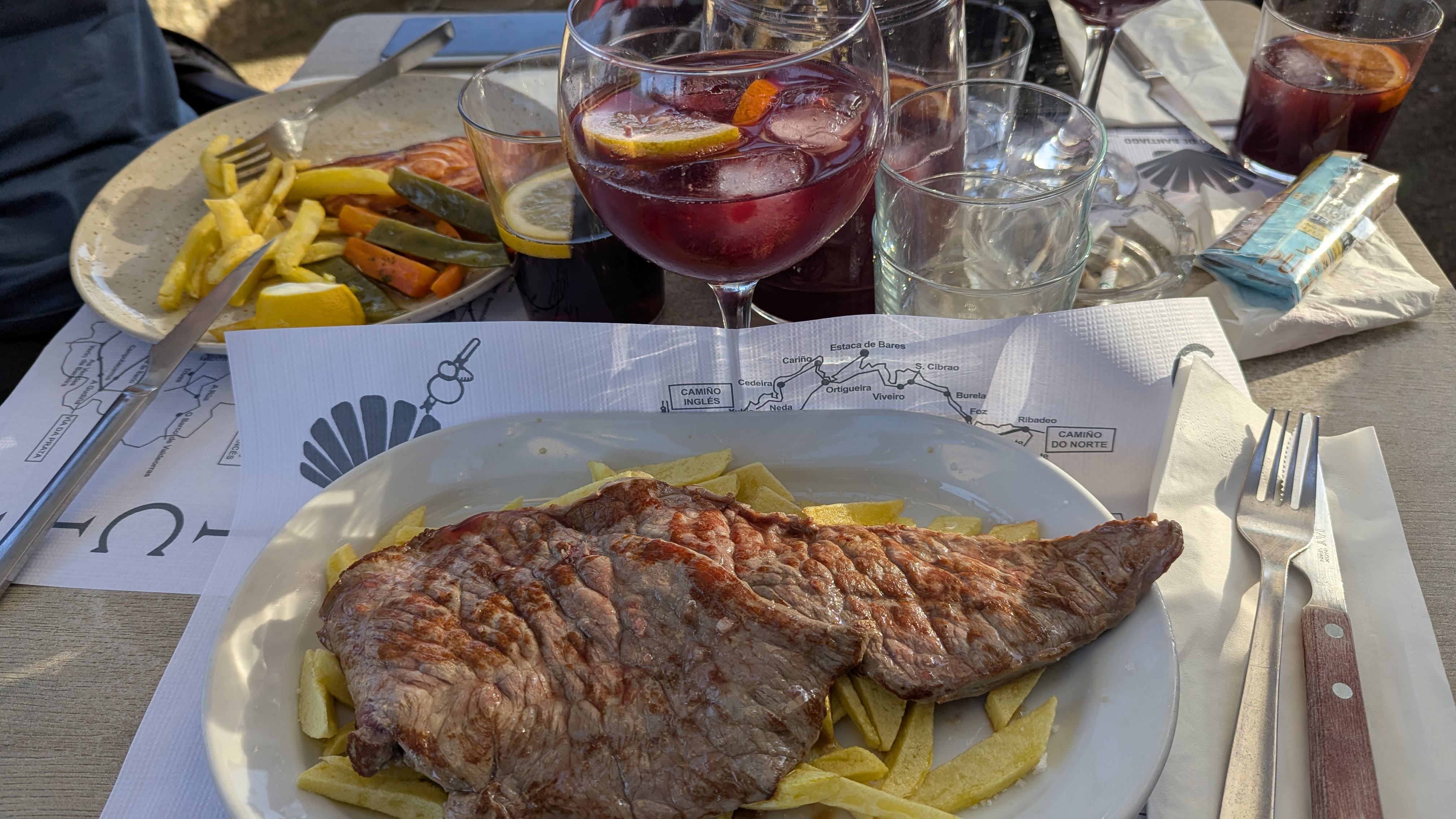 Večer vyrážím až po sedmé. Hned u mostu v restauraci narážím zase na Němku, Claudii – sedí tam s dalšími dvěma a pijí sangrii a objednávají večeři. Přidávám se, taky si dávám sangrii a k tomu beef steak. U vedlejšího stolu večeří Američani, včetně mojí zdravotní sestřičky. Už mám dokonce přezdívku – Blister Man. Amíci u stejného stolu seděli i při obědě, takže se vidíme dnes minimálně potřetí.