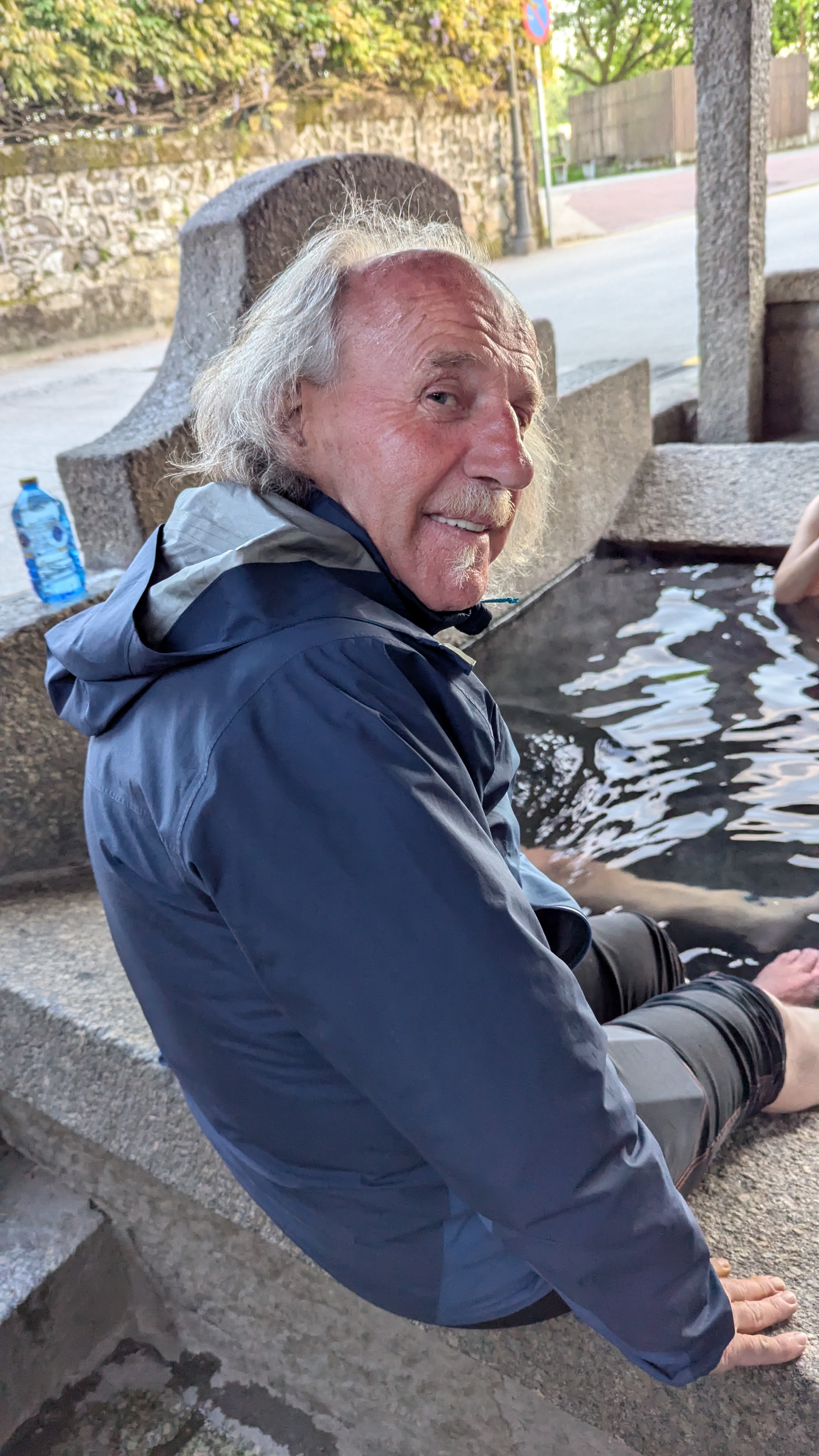 S holkama se to trochu rozjelo, objednáváme ještě džbán sangrie, ale moc dlouho to netrvá – nepatří k nejmladším, takže párty rychle končí. Jdu s nimi ještě kousek jejich směrem a hned za rohem narazíme na zajímavé místo – krytou nádrž, takovou kašnu, kde si lidé kupou nohy. Zkouším prstem a voda je krásně teplá. Zuju se a jdu si smočit nohy taky. Jsou to vlastně takové malé lázně. Užívám si to.