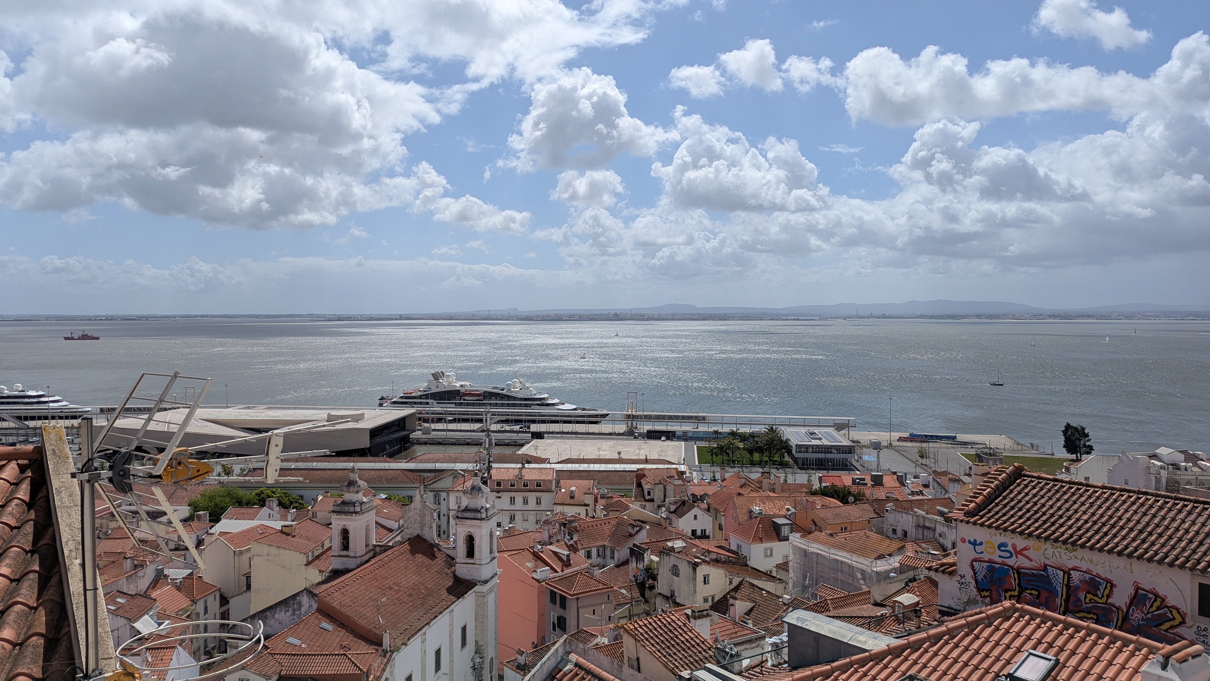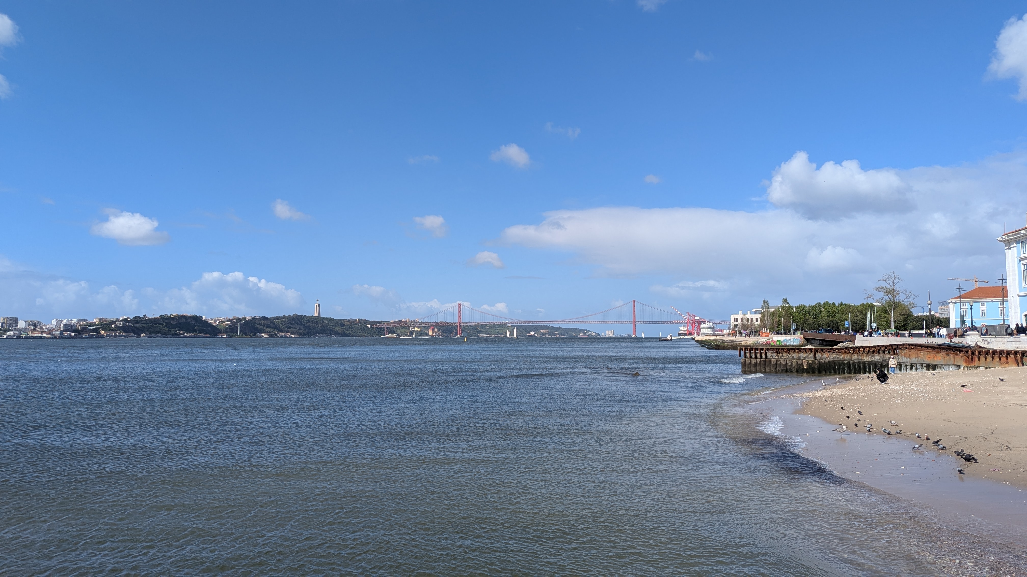 Celý den jsem si náramně užil. Přejel jsem i na druhou stranu řeky Tejo, k obrovské soše Ježíše Krista. Tam přes monstrózní most a zpět trajektem, který je součástí zdejší městské hromadné dopravy.